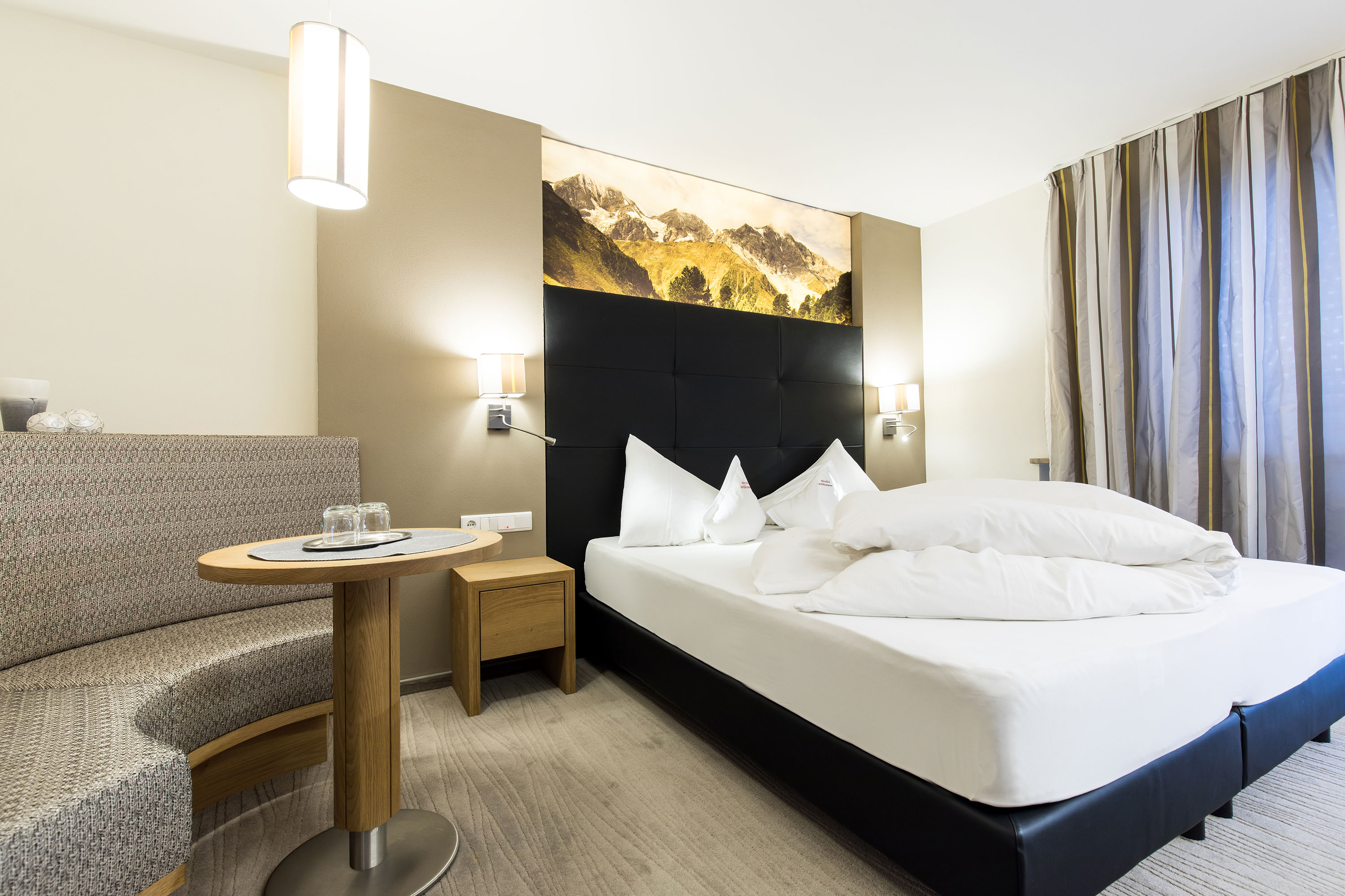 Freiraum zum Träumen und Entspannen... nach einem Ferientag in der mächtigen Bergwelt des Ortlergebiets. Besonderes Augenmerk wurde auf die Gestaltung unserer Zimmer gelegt. Das Holz, sowie die harmonisch aufeinander abgestimmten Farben schaffen eine ruhige, heimelige Atmosphäre. Alle unsere Zimmer sind mit Bad-Dusche, WC, digitalem LCD-TV, Telefon, Safe, Föhn, Sitzecke und Balkon ausgestattet.